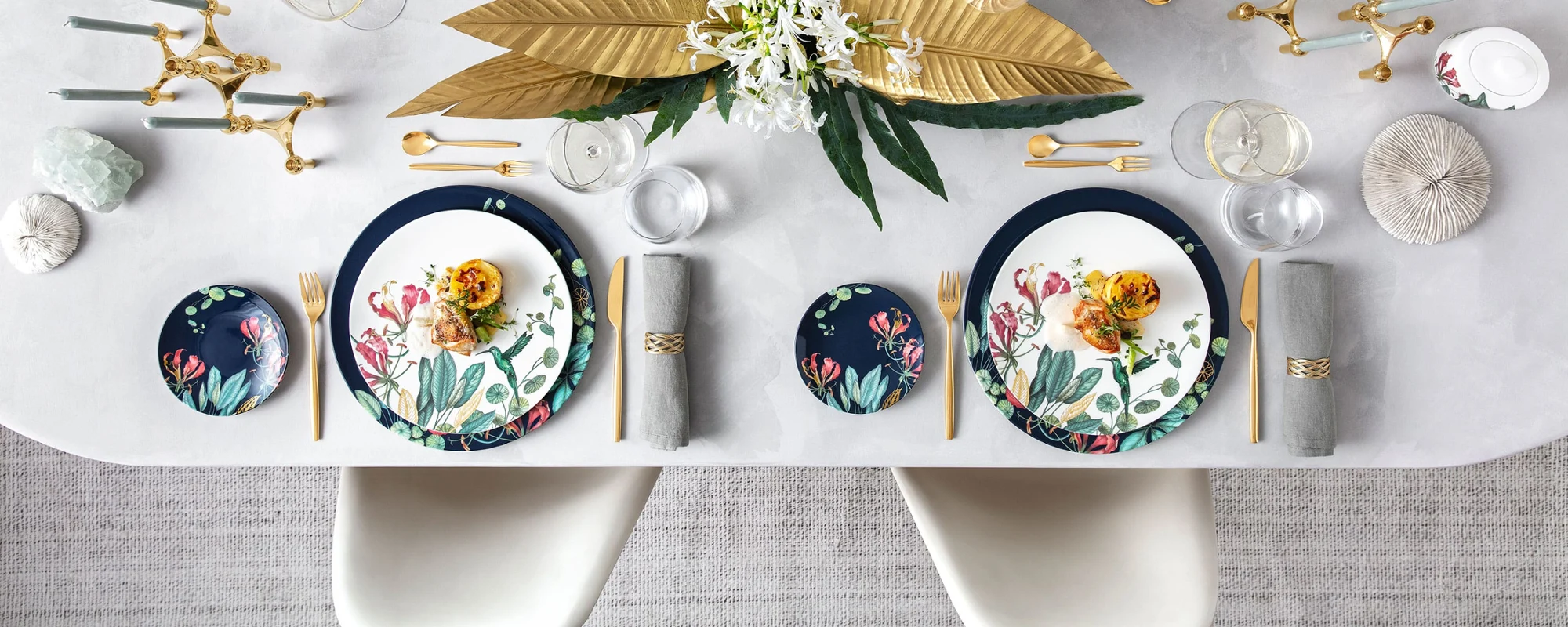 Het porselein voelt bijna gewichtloos aan en geeft een aangename koelte in de hand. De collectie combineert tropisch exotisme met zorgeloze lichtheid, ideaal voor wie luxe momenten wil integreren in het dagelijks leven. De ingewikkelde details en de gladde, glanzende oppervlakteafwerking zorgen ervoor dat het servies eruitziet als een kunstwerk.