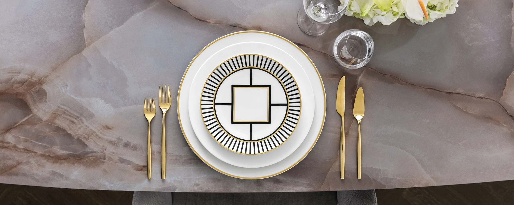 Het stijlvolle porseleinen servies harmonieert perfect met de filigrane schoonheid van de MetroChic-glazen en het MetroChic-bestek. Het bestek is verkrijgbaar in zowel zilverkleurig roestvrij staal als in een vergulde versie. Samen smelten deze elementen samen tot een collectie die niet alleen indruk maakt door de buitengewone glans, maar ook de prachtige accenten van de delicate glazen. MetroChic is ontworpen om de geraffineerde eisen van uw verfijnde servies te vervullen en te verrijken.