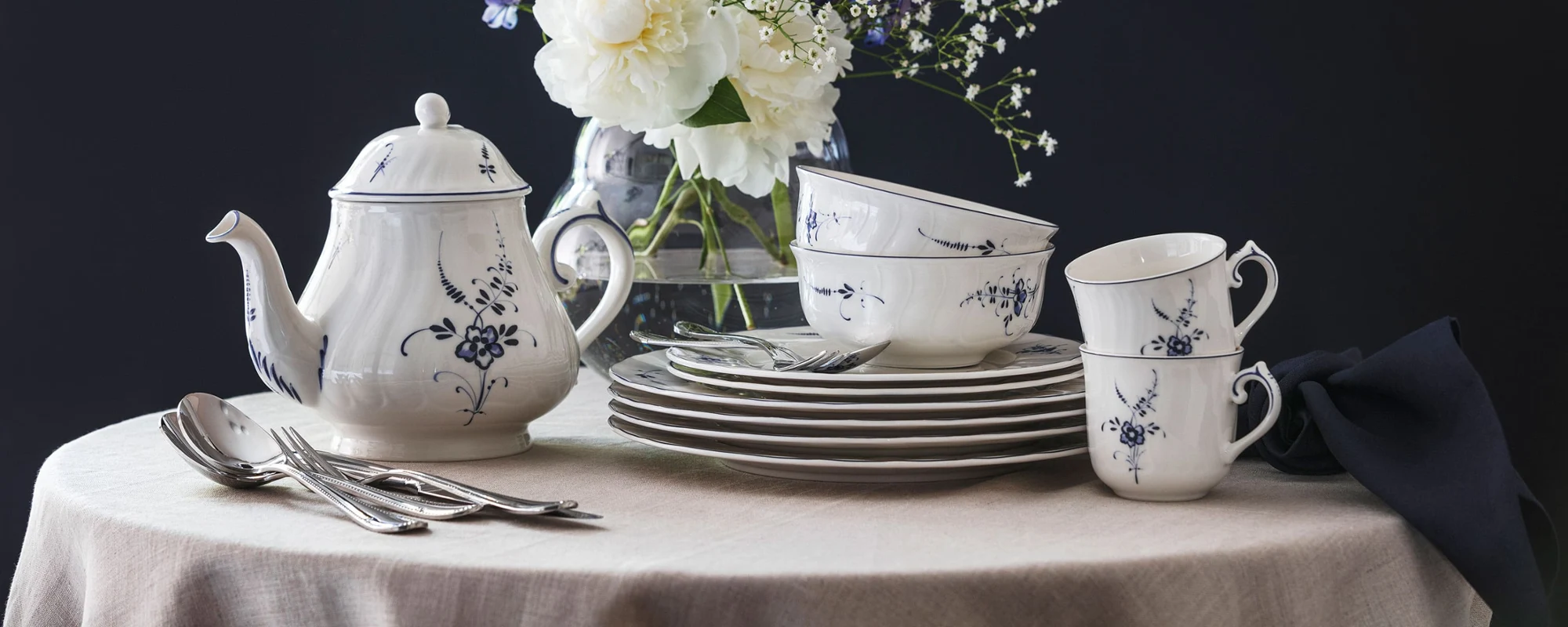 De fascinerende wereld van Villeroy & Boch Vieux Luxembourg en Vieux Luxembourg Brindille verenigt traditioneel vakmanschap en moderne elegantie. Een harmonieuze combinatie van gedetailleerde traditie en eigentijdse verfijning transformeert elke tafel in een plek vol schoonheid en stijl. De kobaltblauwe bloemenpracht op hoogwaardig porselein nodigt u uit om de tijdloze kunst van het tafeldekken te herontdekken.