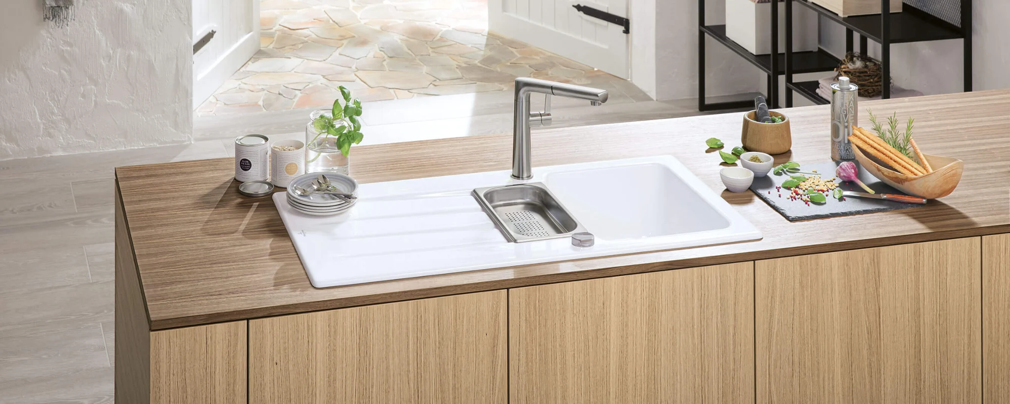 Bij Villeroy & Boch krijgt u nog meer individualiteit voor uw droomkeuken met de grote keuze aan keukengerei. De smaakvol ontworpen keukenkranen, keramische spoelbakken en andere accessoires worden gekenmerkt door een hoge mate van aanpasbaarheid en vullen uw andere keukenuitrusting perfect aan.